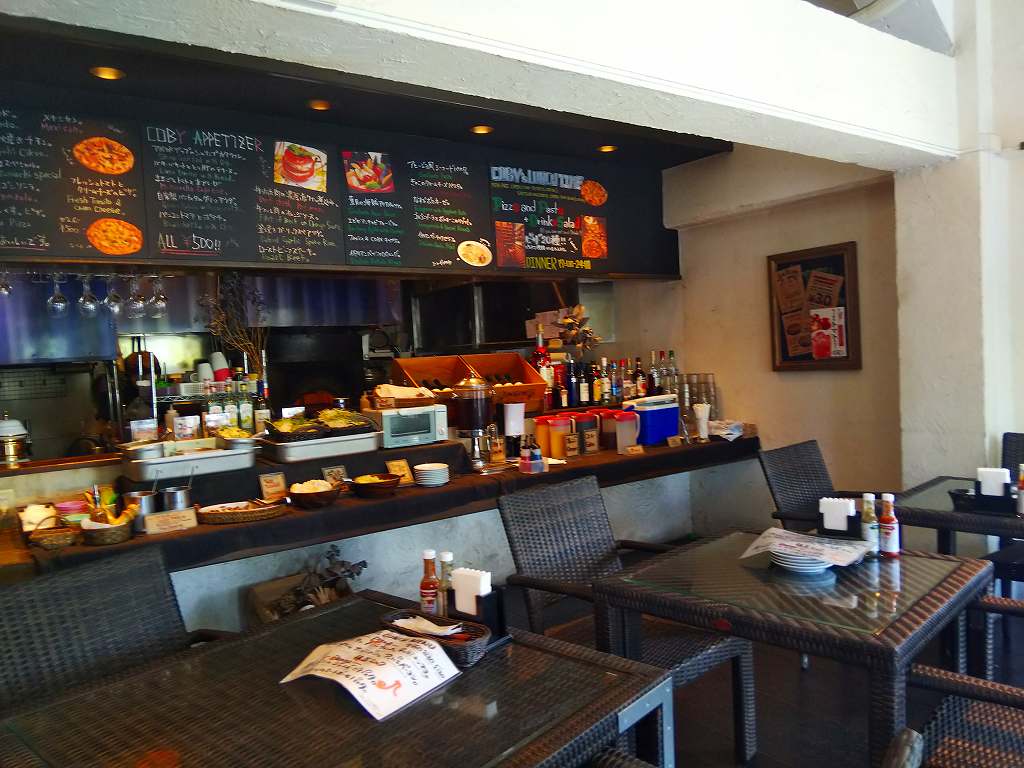最近お気に入りの北谷の「宮城海岸」近くで、先日「タイクーン」に行った時に車を止めた駐車場の前にある「コビー」と言うピザ屋さんへランチに行って来ました。
