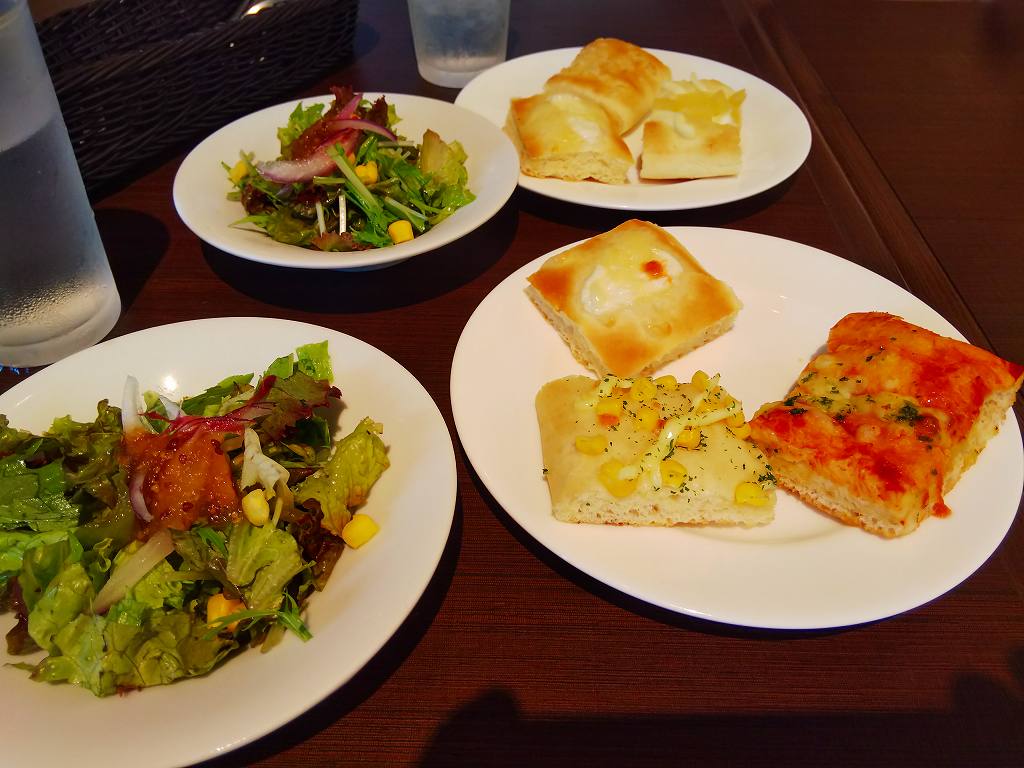 セットメニューで「フォカッチャ食べ放題」が一押しのようでしたが、今夜の飲みの事を考えて食べ過ぎないように「フォカッチャ3個+サラダ+ドリンクセット」を注文しました。