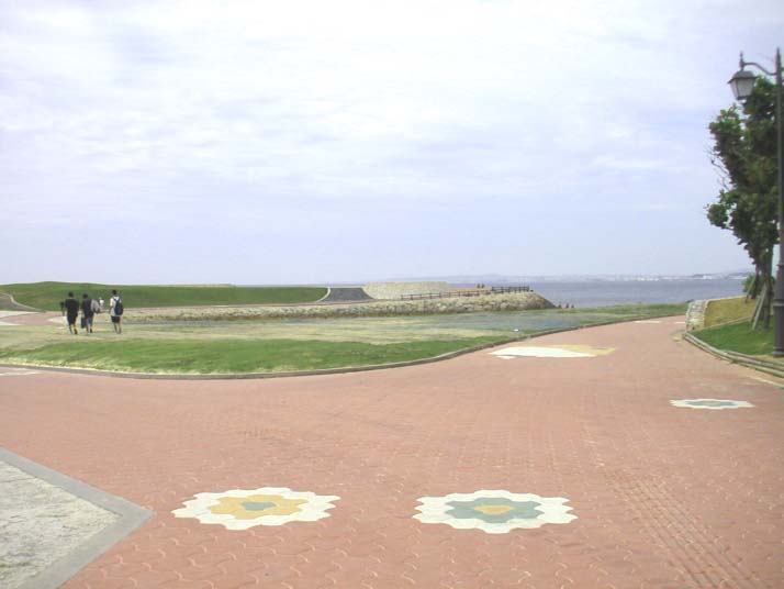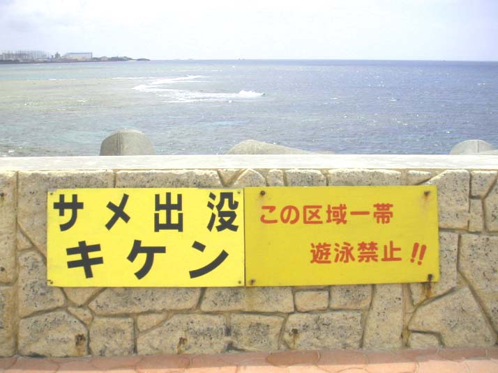 公園を一周して廻り終わる頃に、「サメ出没キケン」の看板が!おいおいマジかよ〜!美ら海水族館で見たけど、怖すぎだよ〜!さっきの若者達に教えないとっ!