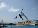 やっと、美ら海水族館に行って来ました。ジンベエザメがでかくてビックリ!まったく写真に入りきれませんでした。さすが世界一の水槽だけあって、圧倒されました。多分、笑ってはいないと思うんだけど、笑っているみたいなので写して来ました(写真左から2番目)。水族館の横に有る、イルカショーで「おきちゃんショー」って書いてました。めちゃくちゃ暑かったけど、ショーは大満足でした。このイルカ達のジャンプを見て、鴨川シーワールドのシャチを思い出してしまいました。今度は空いてる時に行こう〜っと!