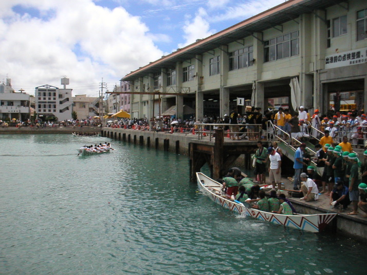 6月27日(日)糸満漁港で開催された糸満ハーリーを見学に行って来ました。ハーリーって、あっちこっちでやってるんですよね!まあ、ボートレースみたいな物なんですけど!3隻づつレースをやるみたいなんですが、あまりルールが解らないままぐるっと一周して帰って来ました。ほとんど、お祭りですね!屋台もたくさん出ていて楽しかった〜!扇風機みたいな機械で風を送ってビニールの建物をふくらまし、中に子供達が入って飛び跳ねて遊ぶアトラクションが有ったんですが、すごく入って見たかった〜!来年は、那覇ハーリーを観に行かないと! |