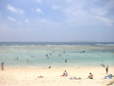 車を停めて、海岸方向へ歩き出すと透明度の高い海が見えて来ました。沖縄では珍しく砂浜が白い砂地でした。(もしかすると人口の砂かも知れませんけど?)